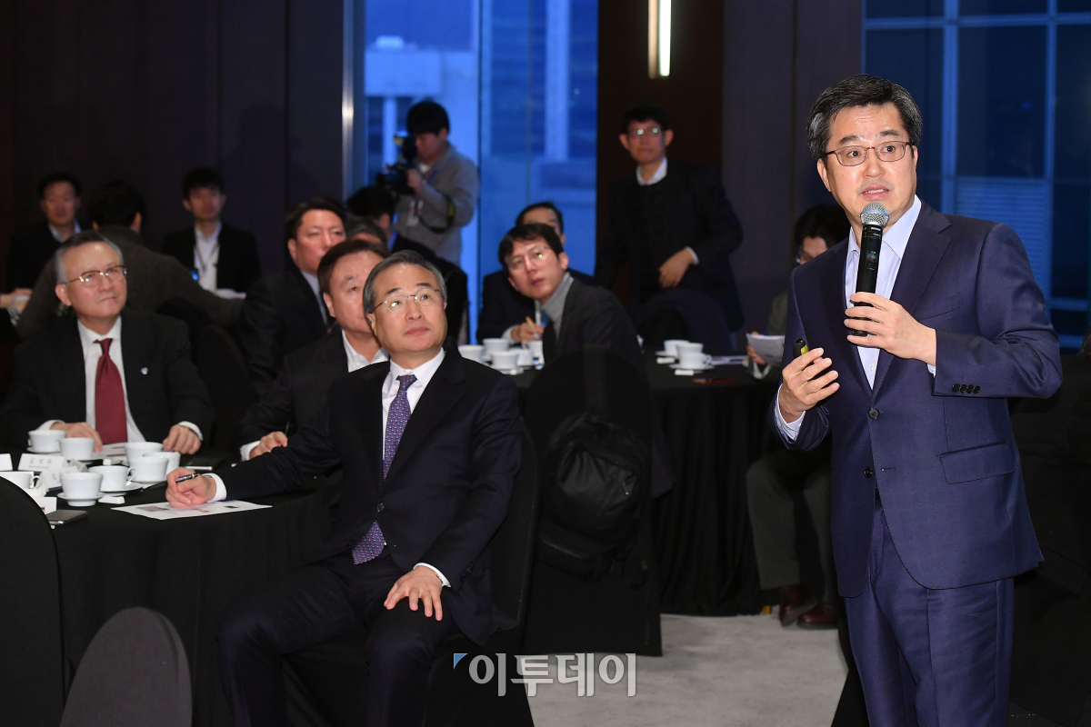 김동연 경제부총리 겸 기획재정부 장관이 22일 오전 서울 중구 플라자호텔에서 열린 여의도연구원 초청 특강에 참석해 '칼레 해전과 칸나이전투, 우리 경제 패러다임의 전환'을 주제로 강연하고 있다. 이동근 기자 foto@