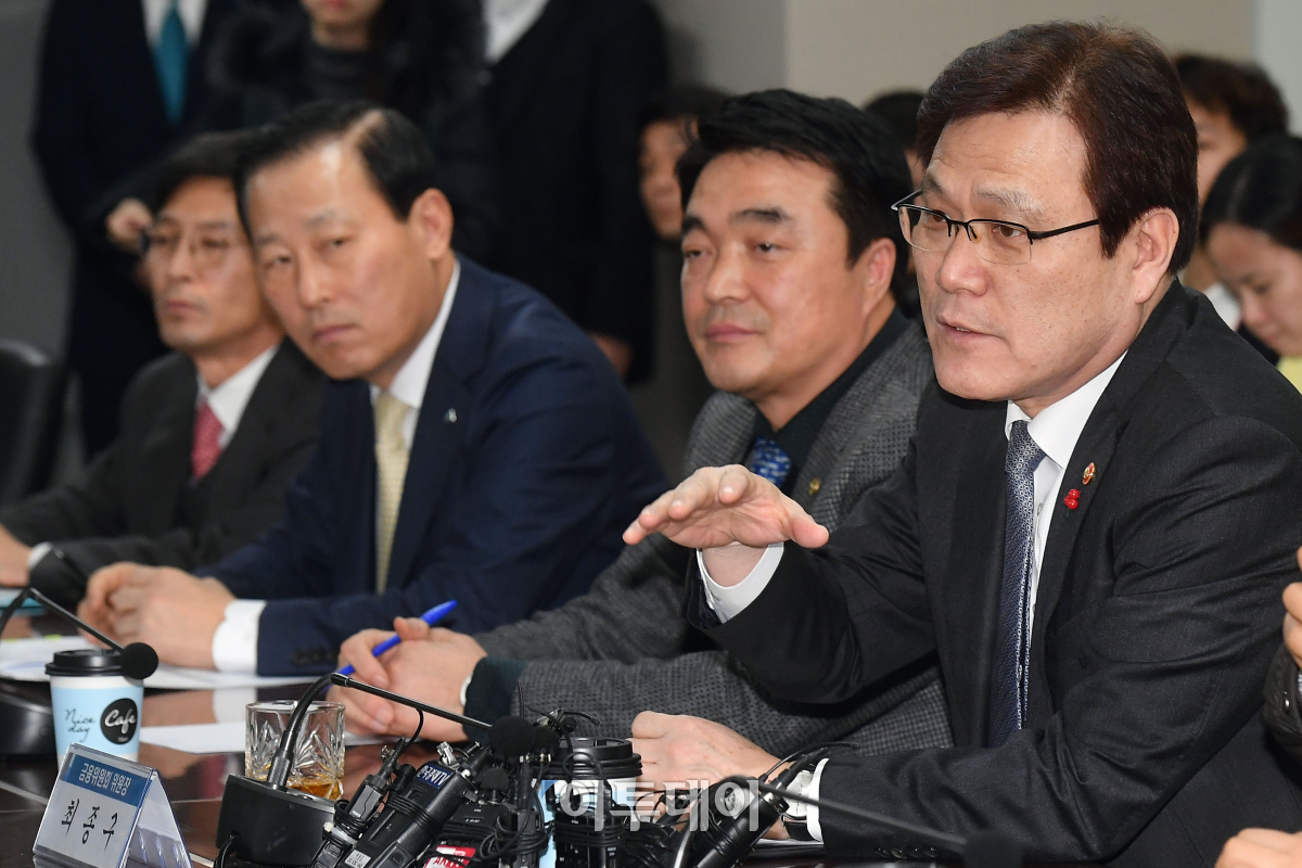 최종구 금융위원장이 22일 서울 중구 여신금융협회에서 열린 카드수수료 관련 소상공인단체 간담회에서 모두발언을 하고 있다. 이동근 기자 foto@