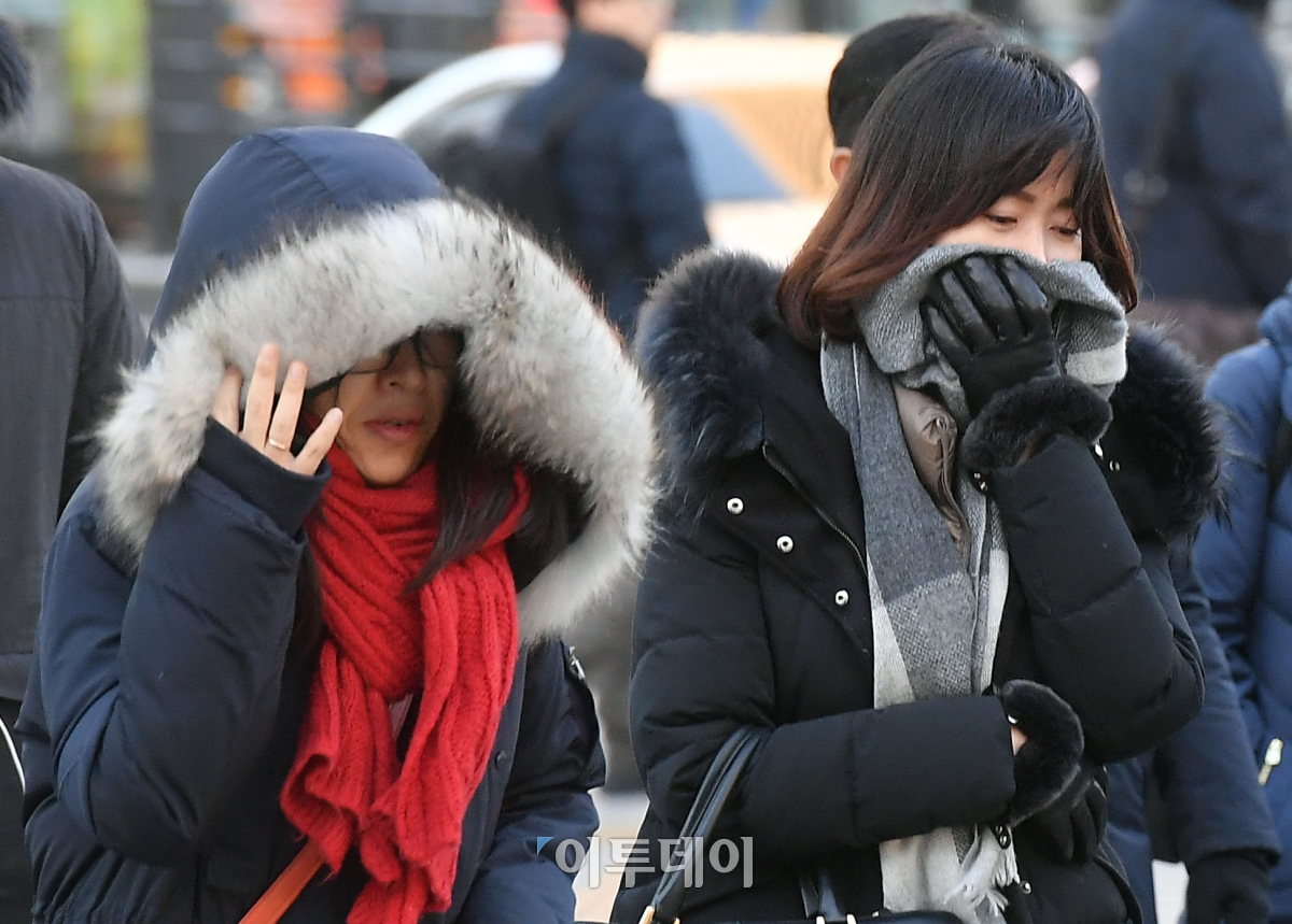 서울의 아침 최저기온이 영하 13도까지 떨어지는 등 중부지방에 한파특보가 발효된 23일 오전 서울 세종대로사거리에서 시민들이 두터운 옷을 껴입고 발걸음을 재촉하고 있다. 기상청은 당분간 내륙을 중심으로 아침 최저 기온이 영하 10~15도 안팎으로 떨어지며 한파가 지속될 것으로 예보했다. 이동근 기자 foto@