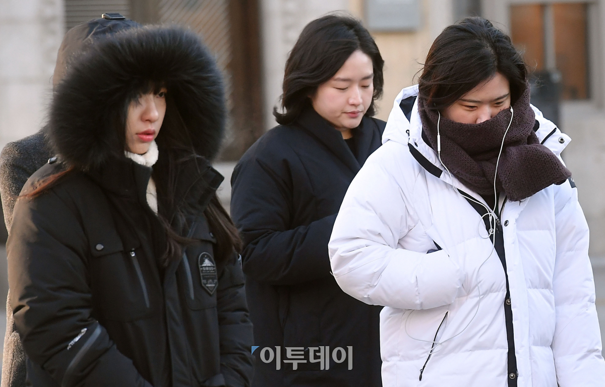 서울의 아침 최저기온이 영하 13도까지 떨어지는 등 중부지방에 한파특보가 발효된 23일 오전 서울 세종대로사거리에서 시민들이 두터운 옷을 껴입고 발걸음을 재촉하고 있다. 기상청은 당분간 내륙을 중심으로 아침 최저 기온이 영하 10~15도 안팎으로 떨어지며 한파가 지속될 것으로 예보했다. 이동근 기자 foto@