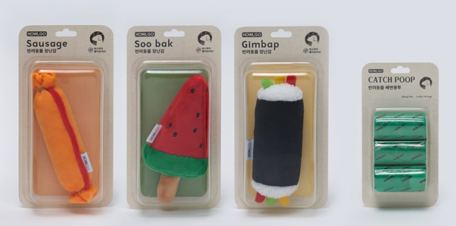 반려견을 위한 캐치토이(5400원) 3종도 출시했다. 해당 상품은 편의점 인기 상품에서 모티브를 얻어 소시지, 수박바, 김밥 모양으로 디자인했다. 반려견이 물어도 걱정 없도록 폴리 100% 소재를 사용했으며 바스락 소리를 내는 충전재를 채워 반려견에게 심리적 안정감을 줄 수 있도록 했다. 함께 선보이는 반려동물 배변봉투(2500원)도 쉽게 썩는 재질로 만든 친환경 상품이다.