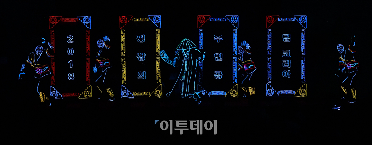 24일 오후 서울 송파구 올림픽파크텔에서 열린 2018 평창동계올림픽 대한민국 선수단 결단식에서 선수단을 응원하는 미디어아트쇼가 펼쳐지고 있다. 15개 종목 218명의 대한민국 선수단은 '금메달 8개, 종합 4위 달성'을 목표로 개최지인 평창으로 향한다. 이동근 기자 foto@