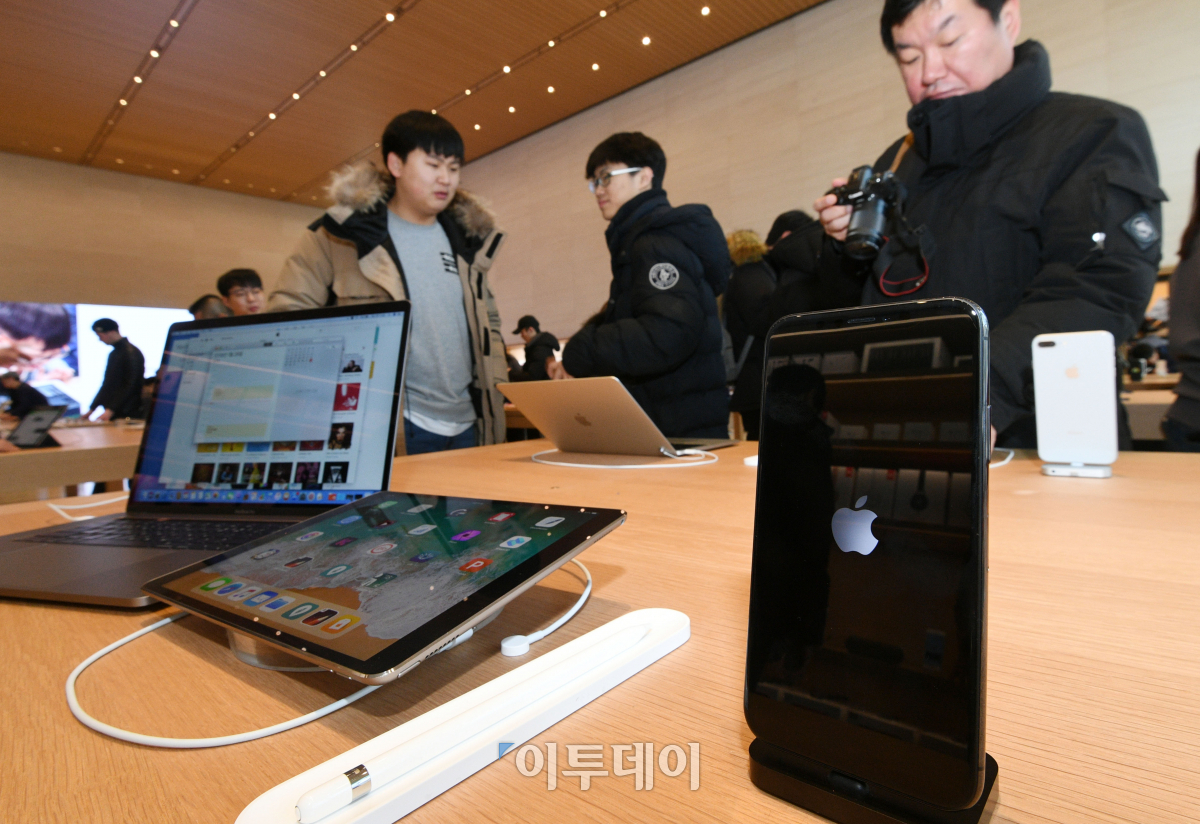 국내 첫 애플스토어 개장후 첫 주말인 28일 서울 강남구 애플 가로수길을 찾은 시민들로 매장이 북적이고 있다. 이동근 기자 foto@