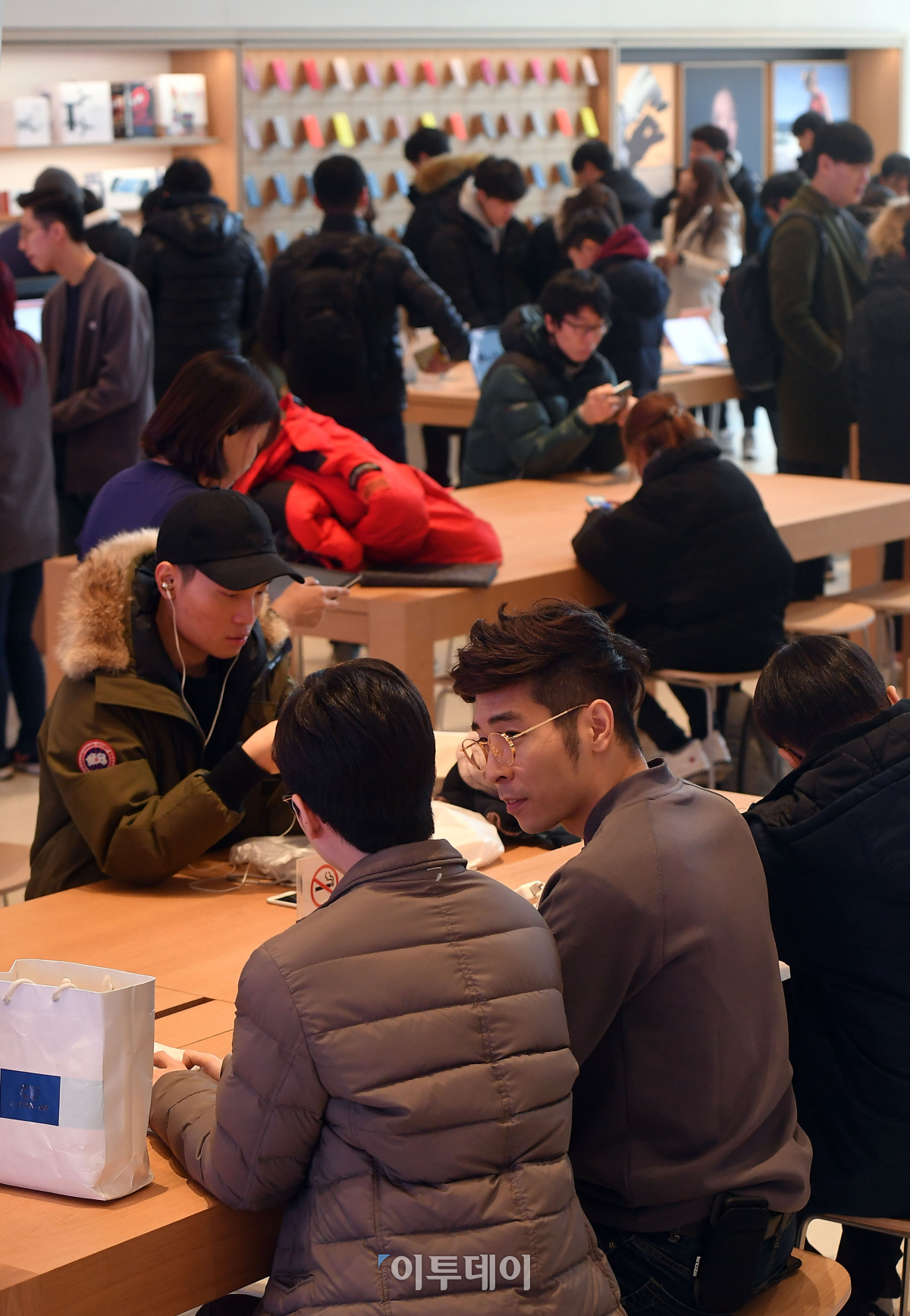 [포토] 애플스토어 첫 주말... 북적이는 매장