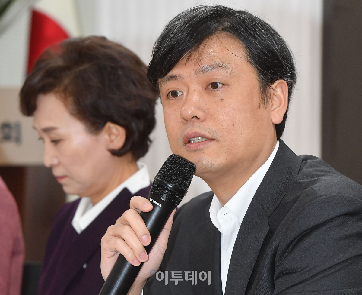장병규 4차산업혁명위원장이 29일 오전 서울 광화문 일자리위원회 브리핑룸에서 열린 4차산업혁명위원회 제4차 회의에서 모두발언을 하고 있다. 이동근 기자 foto@