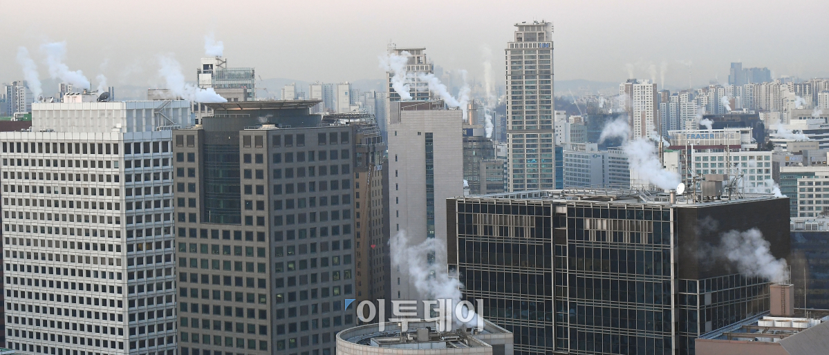 연일 북극 한파가 이어지고 있는 30일 오전 서울 도심의 건물들이 난방을 하며 수증기를 내뿜고 있다. 기상청은 이날 오후부터 서풍의 유입으로 기온이 차차 오르며 당분간 평년과 비슷한 온도를 보일 것으로 예보했다. 이동근 기자 foto@