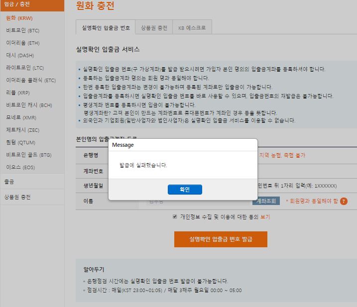 안내에 따라 진행하면 별 무리 없이 진행이 가능하다. 업비트는 은행만 다를 뿐 코인원의 방식과 비슷하다. 다만 사용량 증가 상황에서 인증번호가 너무 늦게 와 인증 페이지 유효기간이 만료되는 상황도 나왔다.
