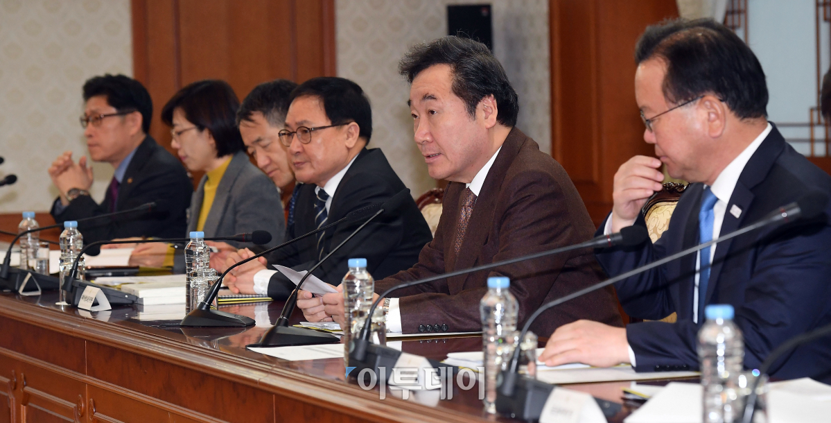 이낙연(오른쪽에서 두 번째) 국무총리가 1일 오전 서울 종로구 정부서울청사에서 열린 국정현안점검조정회의에서 모두발언을 하고 있다. 이동근 기자 foto@