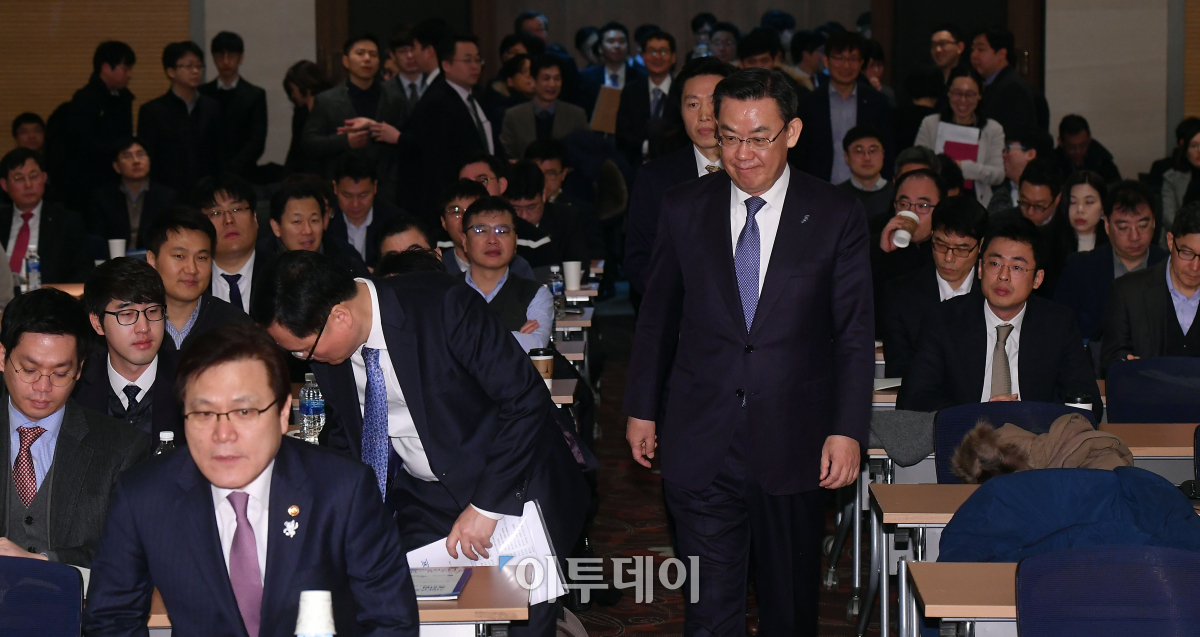 [포토] 기업구조조정 공청회 참석하는 김태영 은행연합회장