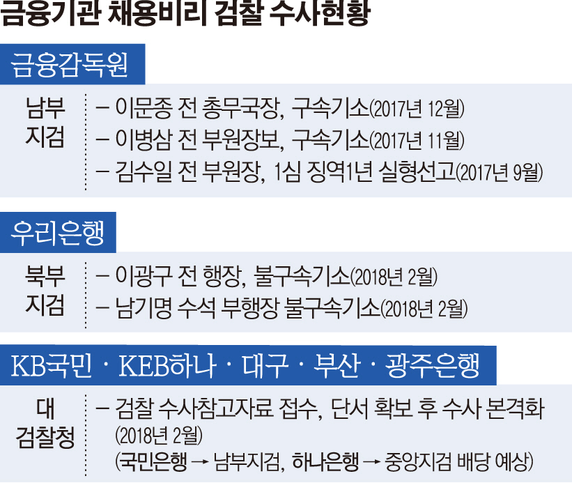 지난해 10월 우리은행에 이어 KB국민, KEB하나 등 은행권 채용비리 사태는 많은 이들의 공분을 샀지만 지금까지 아무 조치도 이뤄지지 않아 늦장대응이라는 지적도 나온다. 금융감독원 고위 관계자는 “모범규준 관련해 아직 추진중인 건 없고 계획만 있는 상황”이라며 “은행 경영자율성을 존중하고 감독당국의 입장을 반영해 절충점을 찾아나설 것”이라고 전했다.