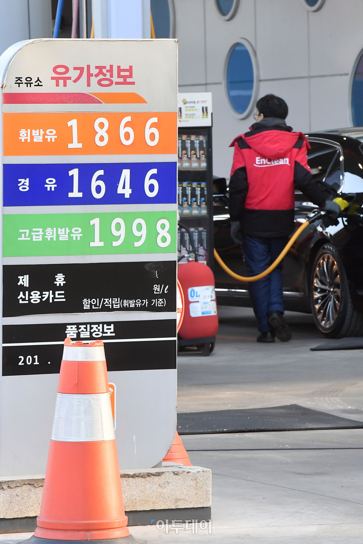 전국 평균 휘발유 판매가격이 전주 대비 4.3원 오른 1559.6원/ℓ를 기록하며 27주 연속 오르며 7년만에 역대 최장 기간 상승기록을 경신했다. 유가정보시스템 오피넷에 따르면 미 달러화 약세와 원유 재고 증가 등의 하락요인이 혼재하며 국제유가는 소폭 변동했으나 기존 상승분이 시차를 두고 반영됨에 따라 국내유가 상승세는 당분간 지속될 것으로 전망했다. 5일 오전 서울 영등포구의 한 주유소 휘발유 가격이 리터당 1866원을 나타내고 있다. 이동근 기자 foto@