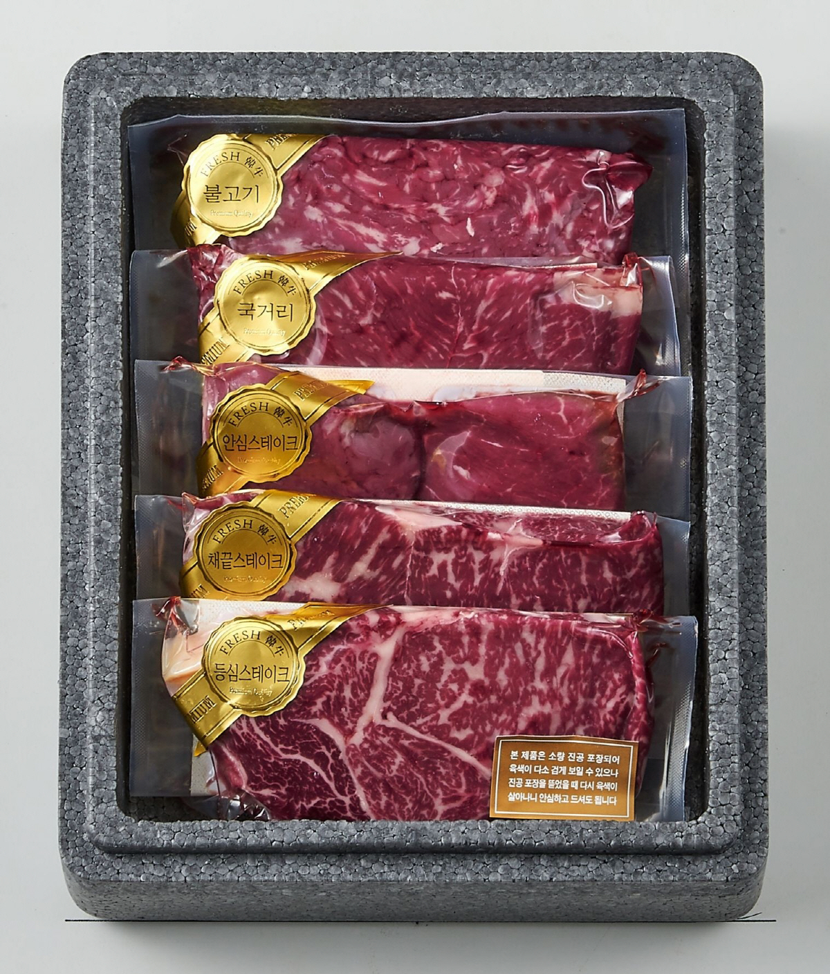 또 하나의 선물세트로 1등급 한우의 다양한 부위를 맛 볼 수 있는 ‘한우 냉장 간편포장 한 마리 세트(1등급 한우 등심·안심·채끝·국거리·불고기 각 200g)’는 9만9000원에 선보인다.