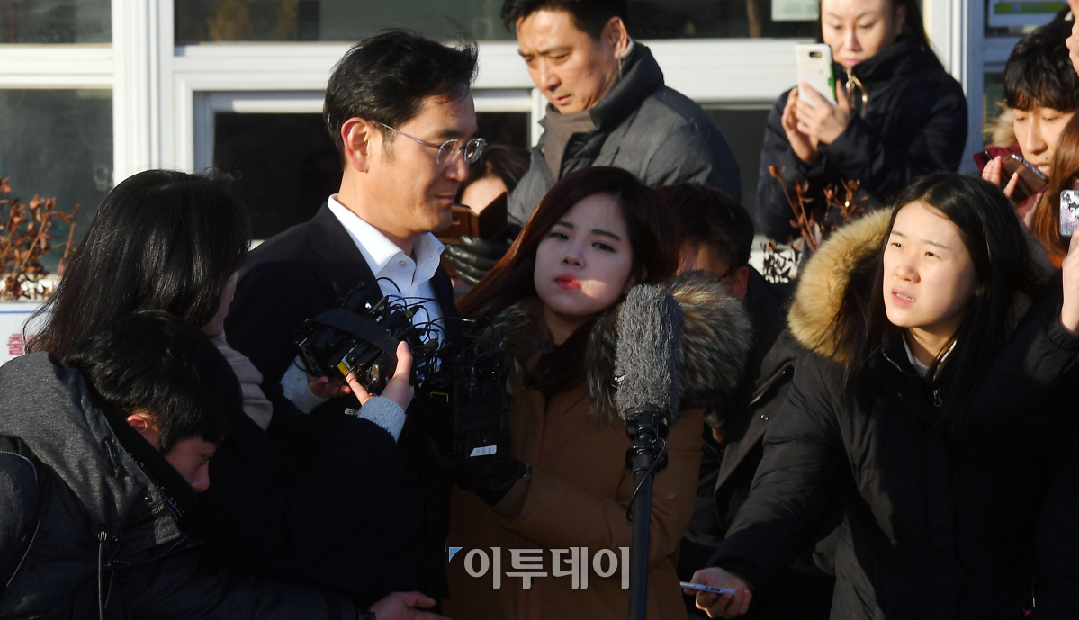 항소심 선고공판에서 징역 2년 6개월에 집행유예 4년으로 353일만에 석방된 이재용 삼성전자 부회장이 5일 경기 의왕시 서울구치소를 나서고 있다. 이동근 기자 foto@