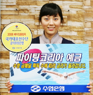 이 상품은 베이징올림픽 수영종목에서 국가대표 선수가 금메달 1개를 획득하면 만기이율 연 0.1%를, 2개 이상을 획득하면 만기이율 0.2%를 신규 금리에 추가해 적용한다.