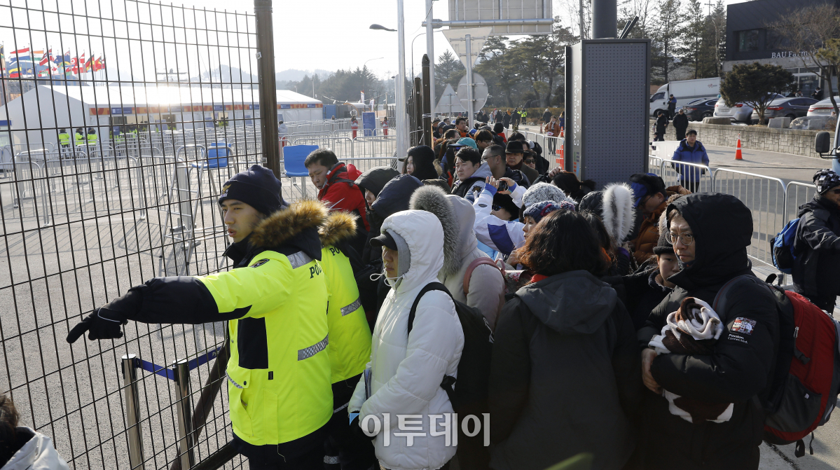 2018평창동계올림픽 개막일인 9일 강원 평창군 올림픽플라자 앞에서 관람객들이 입장을 하기 위해 기다리고 있다. 이동근 기자 foto@