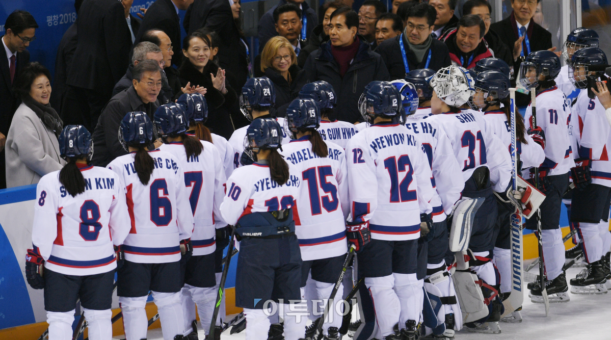 북측 고위급대표단의 일원인 최휘 국가체육지도위원장, 리선권 조평통 위원장도 단일팀 경기 관람에 동행했고, 조명균 통일부 장관, 천해성 차관, 임종석 대통령 비서실장, 정의용 국가안보실장도 아이스하키 경기장으로 향했다.