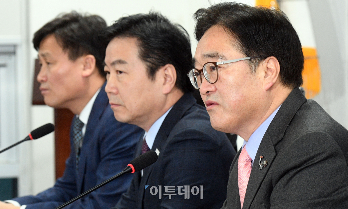 우원식 더불어민주당 원내대표가 12일 오전 서울 여의도 국회 의원회관에서 열린 기술탈취 근절대책 당정협의에서 모두발언을 하고 있다. 이동근 기자 foto@