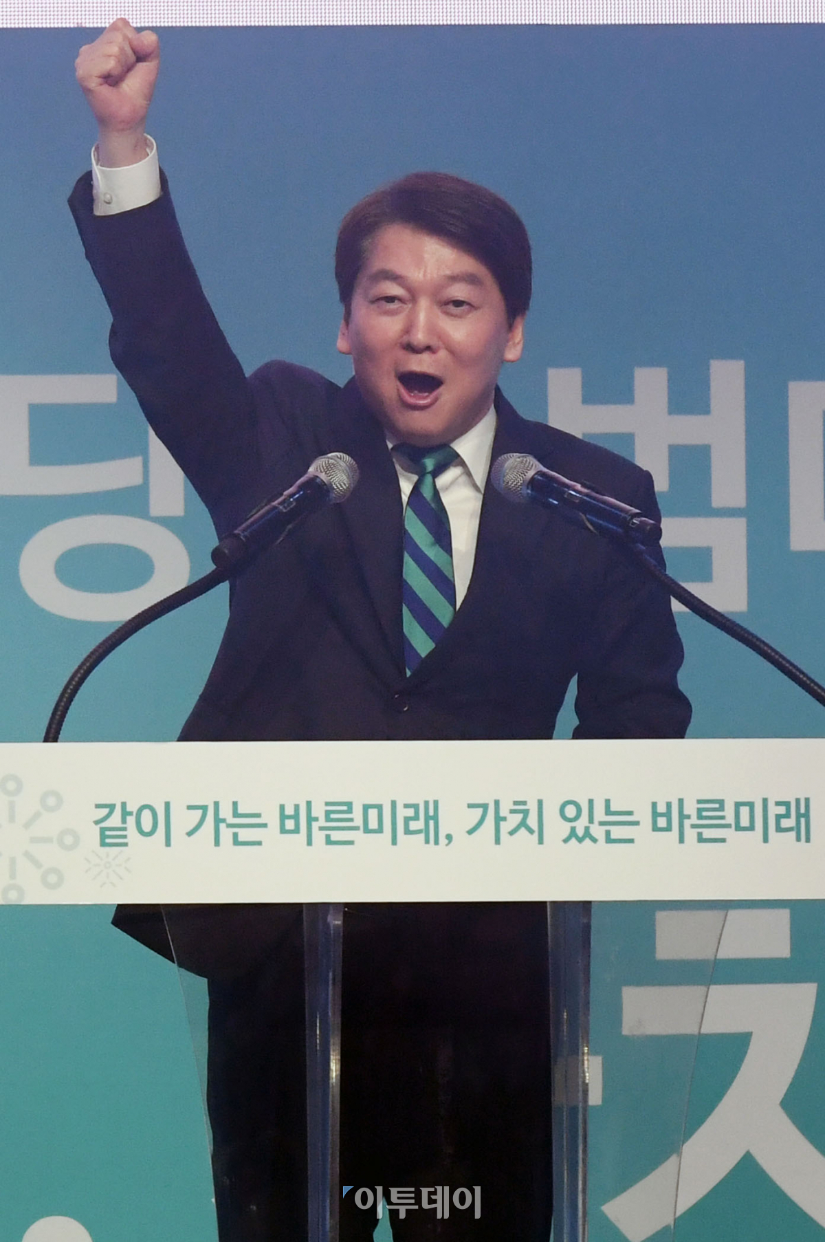 안철수 바른미래당 전 대표가 13일 경기도 고양시 킨텍스 제2전시장에서 열린 바른미래당 출범대회에서 인사말을 하고 있다. 이동근 기자 foto@