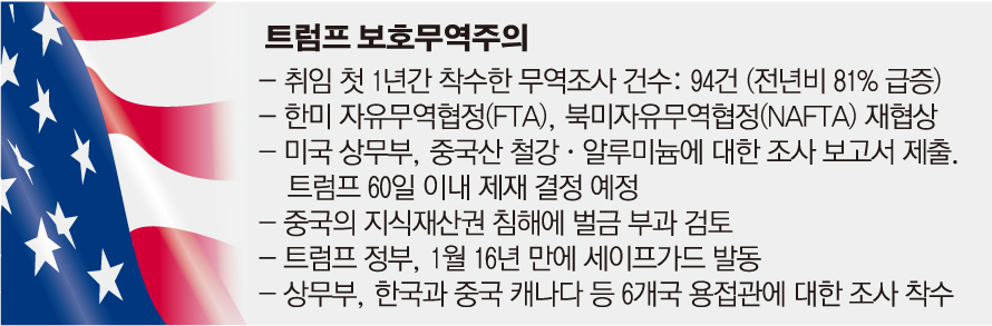 도널드 트럼프 미국 대통령의 무차별 보호무역 공세가 계속된다. 트럼프 정부는 출범 후 1년간 다른 나라 제품에 대한 관세 부과로 이어질 수 있는 무역조사를 대폭 늘린 데 이어 조만간 새로운 조치에도 들어갈 전망이다.
