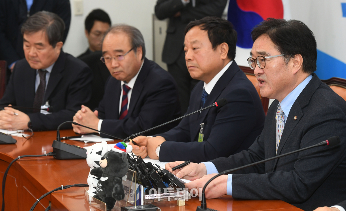 우원식 더불어민주당 원내대표가 19일 서울 여의도 국회에서 열린 한국GM 대책TF 협력업체 긴급간담회에서 모두발언을 하고 있다. 이동근 기자 foto@