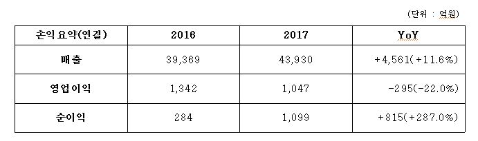 ㈜코오롱 관계자는 “주요 종속회사들의 실적 개선과 함께 코오롱인더스트리의 신증설 라인이 가동되고 증설분이 순차적으로 반영되면 2018년도 지속적인 실적 개선이 이루어질 것”으로 내다봤다.