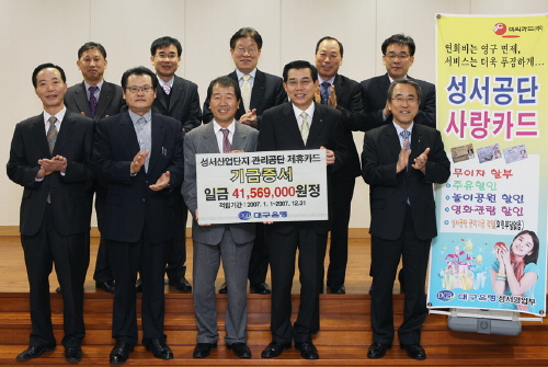 성서공단 제휴카드는 대구은행의 지역밀착경영 일환으로 2005년 6월부터 발급해왔으며, 매년 발전기금을 전달해 왔다.