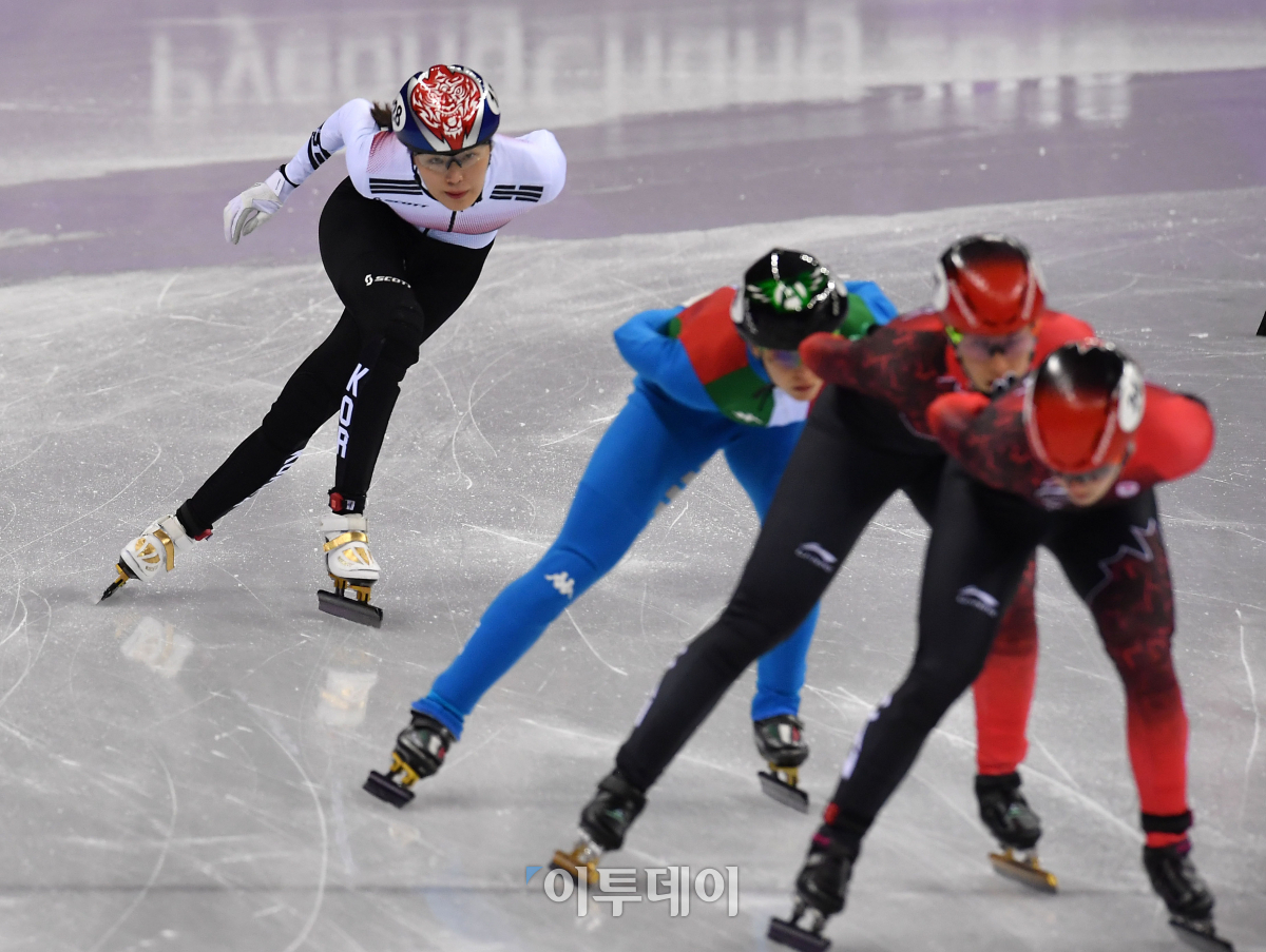 22일 강원도 강릉아이스아레나에서 열린 2018 평창동계올림픽 여자 쇼트트랙 1000m 준결승에서 김아랑이 역주하고 있다. 이동근 기자 foto@