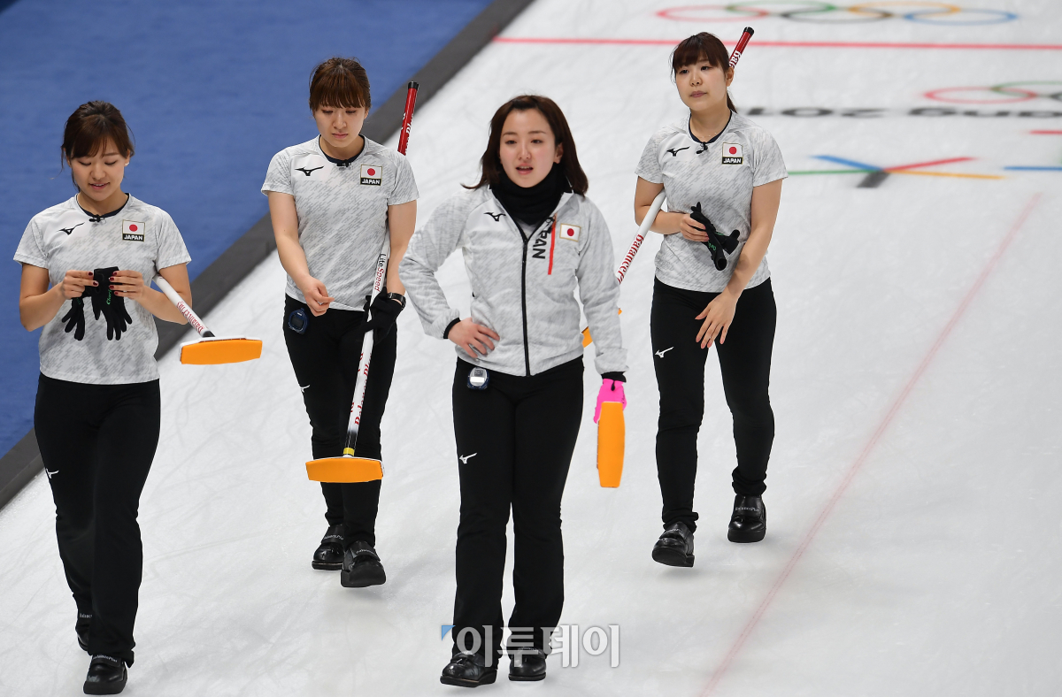 23일 강원도 강릉컬링센터에서 열린 2018 평창동계올림픽 여자 컬링 준결승 대한민국과 일본전에서 7대 8로 패한 일본 선수들이 아쉬운 표정을 지으며 퇴장하고 있다. 이동근 기자 foto@