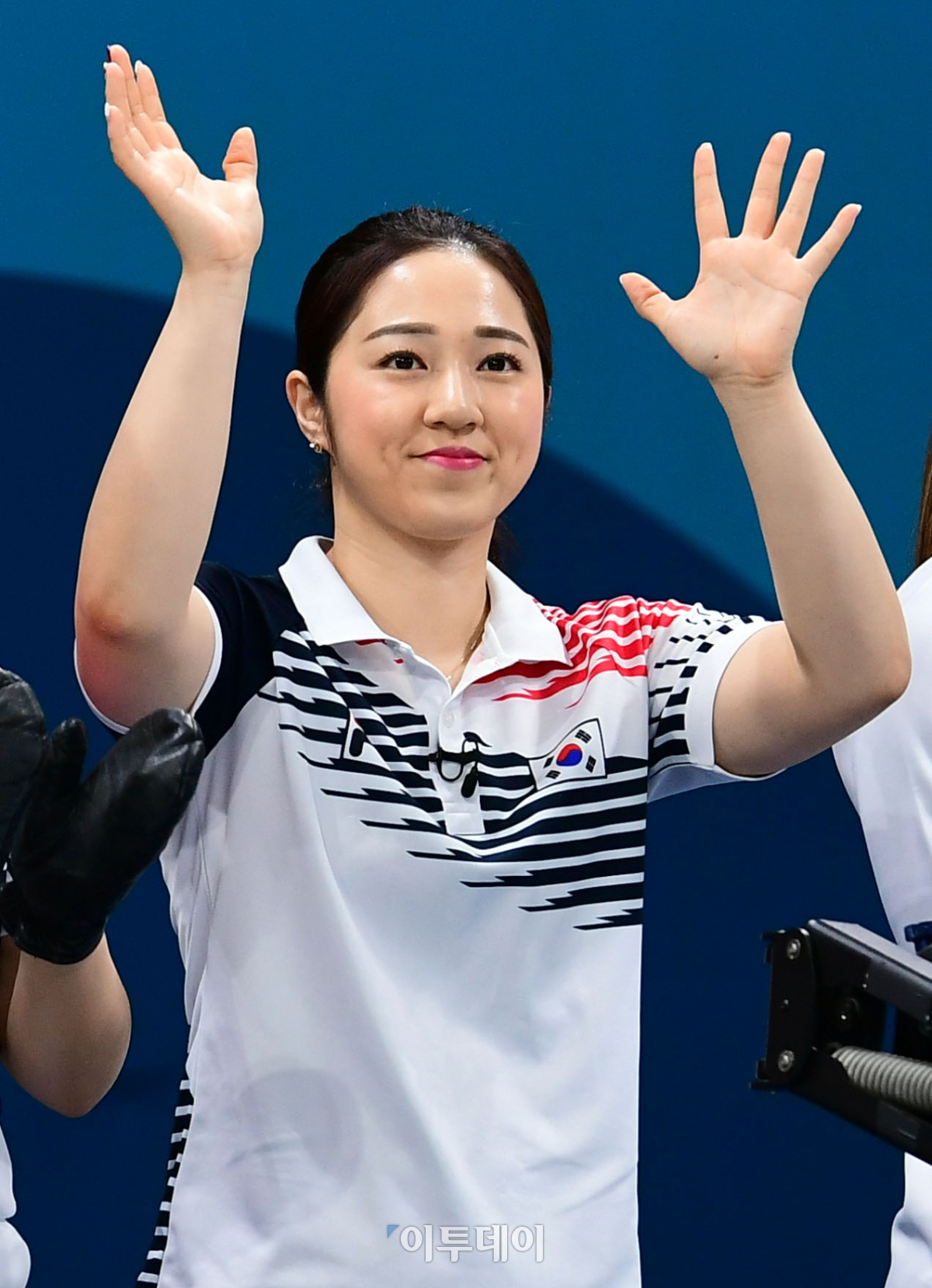 2018평창동계올림픽 여자 컬링 결승 대한민국(김은정, 김영미, 김경애, 김선영, 김초희)과 스웨덴의 경기가 25일 강원도 강릉컬링센터에서 열렸다. 써드 김경애가 관중을 향해 손을 흔들고 있다. 이동근 기자 foto@
