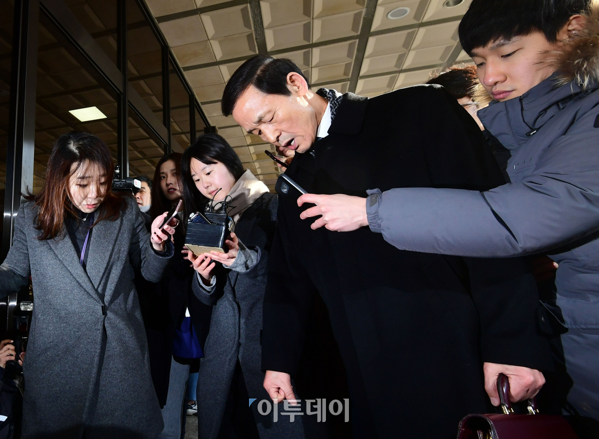 세월호 참사 당시 청와대 보고 시각을 조작했다는 의혹을 받고 있는 김장수 전 국가안보실장이 26일 오전 서울중앙지검에 피의자 신분으로 출석하고 있다. 이동근 기자 foto@
