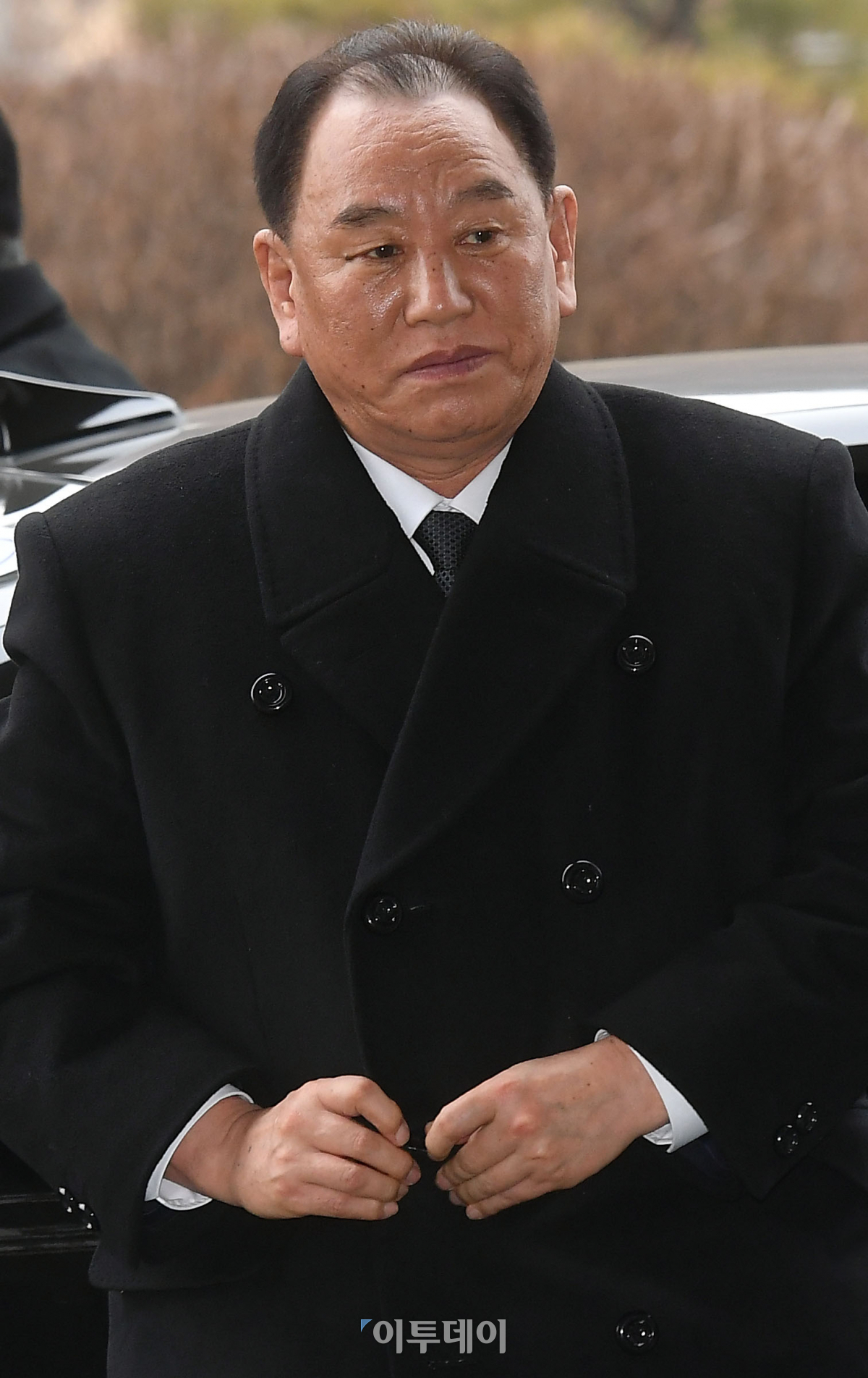 김영철 북한 노동당 중앙위원회 부위원장 겸 통일전선부장이 27일 출경을 위해 경기 파주시 남북출입사무소로 들어서고 있다. 이동근 기자 foto@