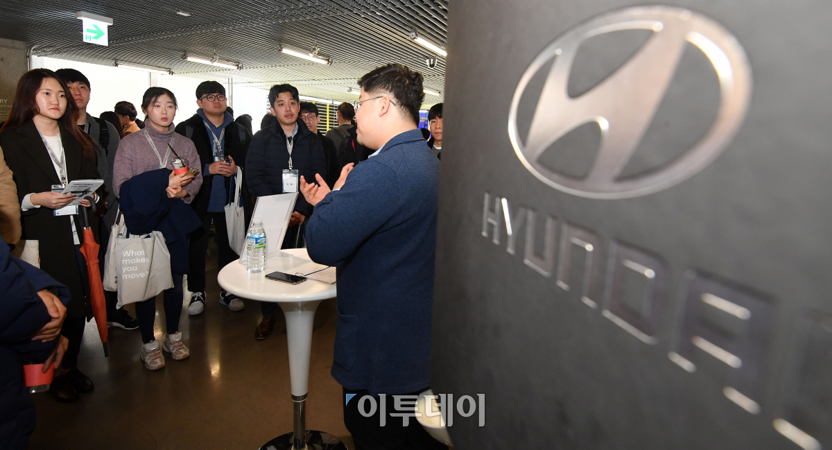 현대자동차 'H-채용설명회'가 5일 서울 강남구 현대모터스튜디오에서 열린 가운데 구직자들이 선배 사원들에게 취업상담을 받고 있다. 상반기 채용정보를 제공하는 이번 설명회는 사전 신청자 200명에게 채용과 직무에 대한 정보를 제공한다. 참가하지 못하는 지원자는 실시간 행사 현장을 현대차 채용 페이스북과 카카오톡을 통해 생중계로 시청할 수 있다. 이동근 기자 foto@
