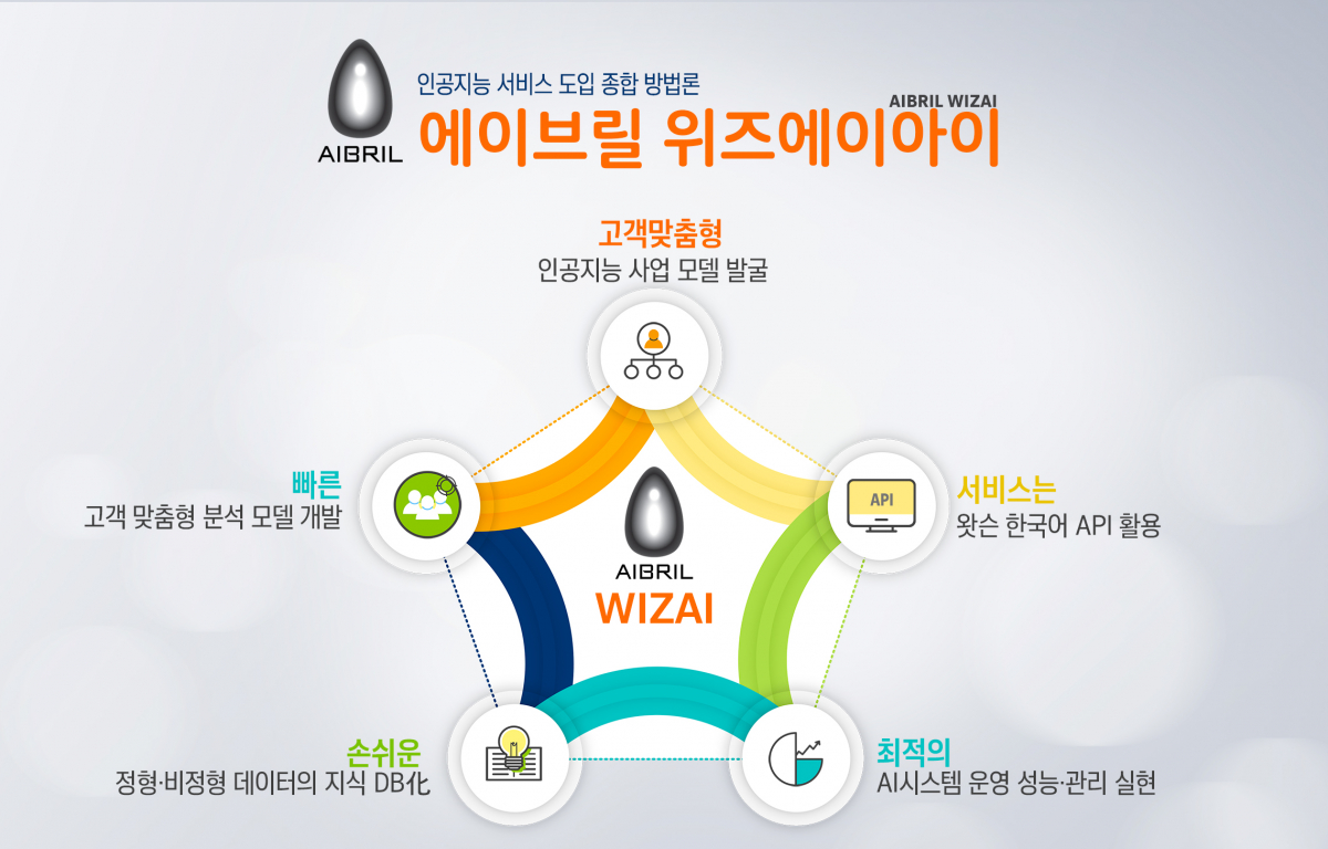 우선 고객들의 해결 과제에 대해 최적의 인공지능 서비스 도입 컨설팅부터 서비스 설계, 구축, 운영까지 한번에 지원받을 수 있도록 설계됐다. 에이브릴 위즈AI는 자연어를 기반으로 한 인공지능 지식 데이터베이스 구축, 인공지능 비즈니스와 서비스 모델 구현, 에이브릴 기반의 시스템 구축과 운영 등 모든 내용을 담고 있다.