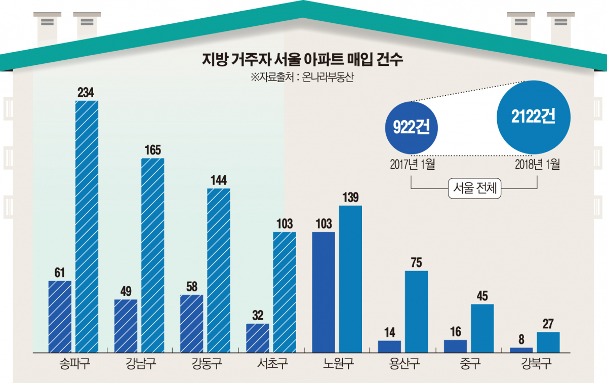 최근 지방에 거주하는 거래자들이 서울 아파트를 대거 사들인 것으로 나타났다.