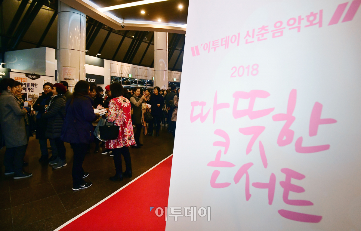 이투데이 신춘음악회 '2018 따뜻한 콘서트'가 9일 서울 여의도 KBS홀에서 열린 가운데 공연장이 관람객들로 북적이고 있다. 이번 행사는 서현진 아나운서의 진행으로 K‘ARTS 발레단, 김남윤 바이올린 오케스트라, 포르테 디 콰트로, 김범수 등이 함께한다. 고이란 기자 photoeran@