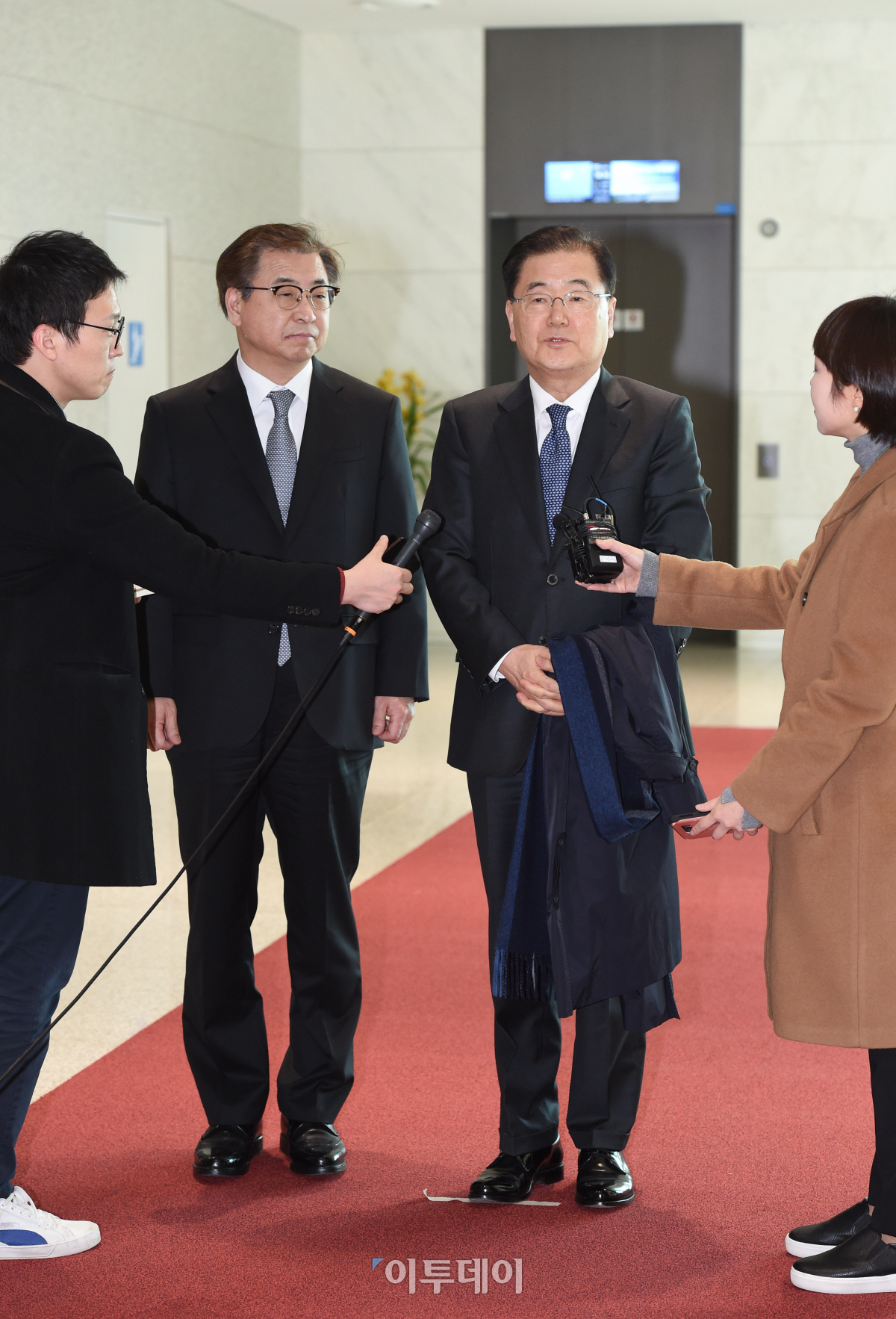[포토] 정의용-서훈 '북미정상회담' 조율 마치고 귀국