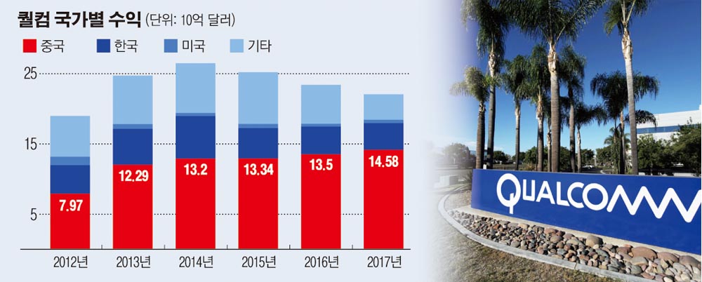 트럼프 대통령의 행정명령으로 퀄컴은 브로드컴의 적대적 인수를 막았지만 보호 조치에 대한 쓰디쓴 대가를 치를 것으로 보인다. 퀄컴은 중국과 경쟁하는 동시에 중국에 의존하고 있기 때문이다. 퀄컴의 매출 중 약 3분의 2는 중국에서 일어난다. 2017회계연도 퀄컴의 매출 223억 달러 중 65%는 중국에서 발생했는데 이는 전년도의 57%보다 증가한 것이다.