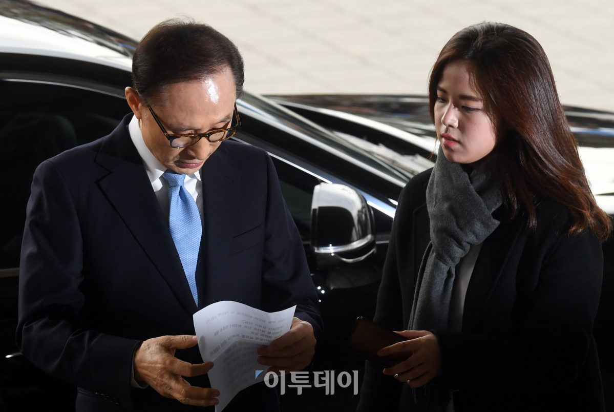 이명박 전 대통령이 14일 오전 서울중앙지검에 피의자 신분으로 출석하며 입장을 밝히고 있다. 뇌물, 직권남용 등 20여 개의 혐의를 받는 이 전 대통령은 검찰조사를 받는 역대 5번 째 전직 대통령이 된다. 이동근 기자 foto@