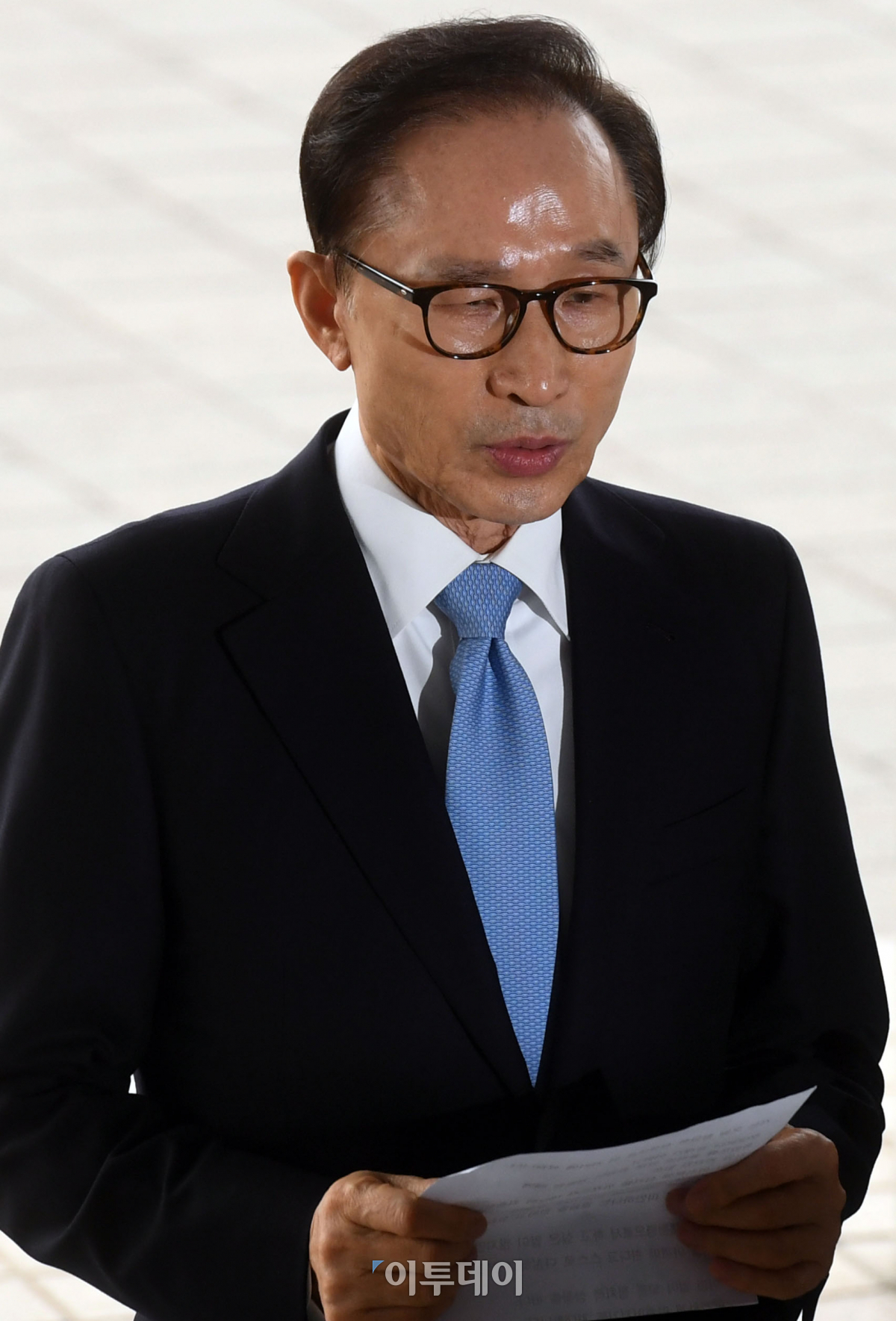 이명박 전 대통령이 14일 오전 서울중앙지검에 피의자 신분으로 출석하며 입장을 밝히고 있다. 뇌물, 직권남용 등 20여 개의 혐의를 받는 이 전 대통령은 검찰조사를 받는 역대 5번 째 전직 대통령이 된다. 이동근 기자 foto@