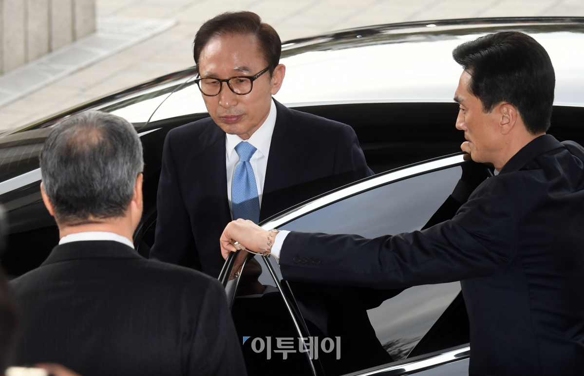 이명박 전 대통령이 14일 오전 서울중앙지검에 피의자 신분으로 출석하고 있다. 뇌물, 직권남용 등 20여 개의 혐의를 받는 이 전 대통령은 검찰조사를 받는 역대 5번 째 전직 대통령이 된다. 이동근 기자 foto@