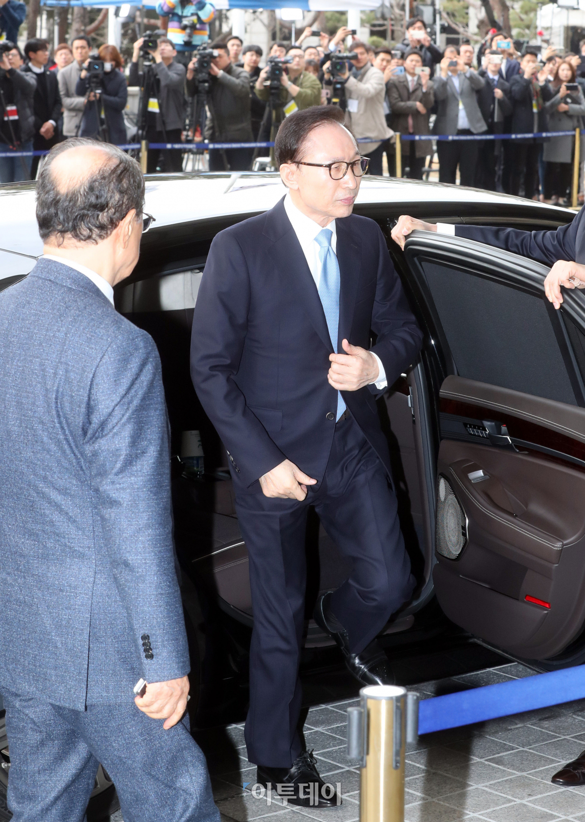 이명박 전 대통령이 14일 오전 서울중앙지검에 피의자 신분으로 출석하고 있다. 뇌물, 직권남용 등 20여 개의 혐의를 받는 이 전 대통령은 검찰조사를 받는 역대 5번 째 전직 대통령이 된다. 사진공동취재단