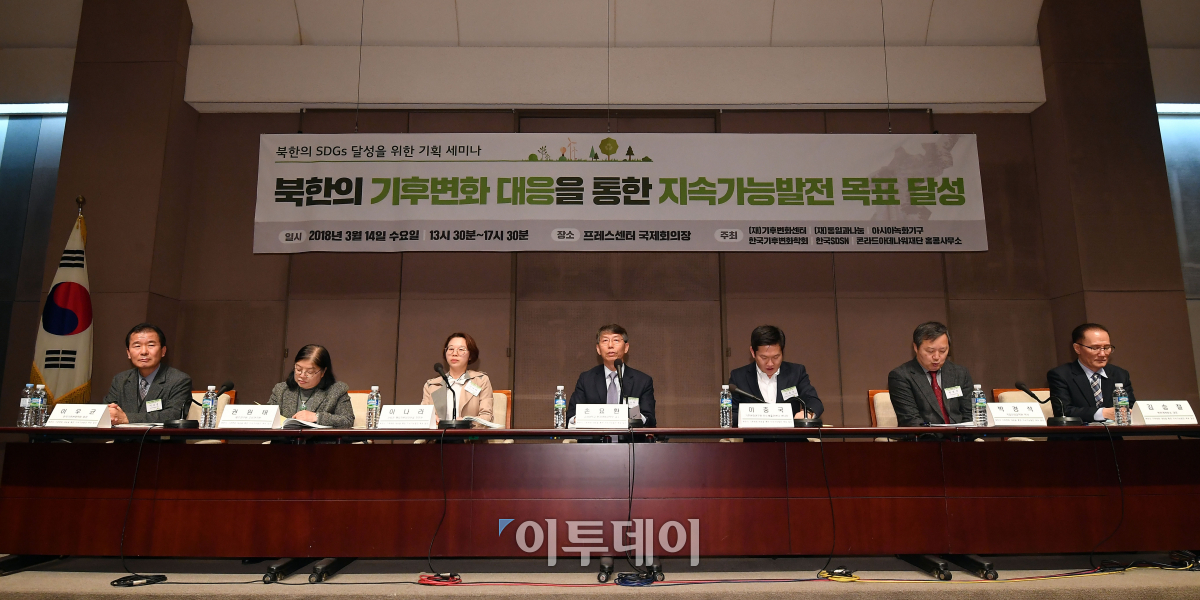 14일 서울 중구 프레스센터에서 열린 북한의 SDGs 달성을 위한 기획 세미나에서 '북한의 기후변화 대응 방안'을 주제로 패널토론이 열리고 있다. 이동근 기자 foto@