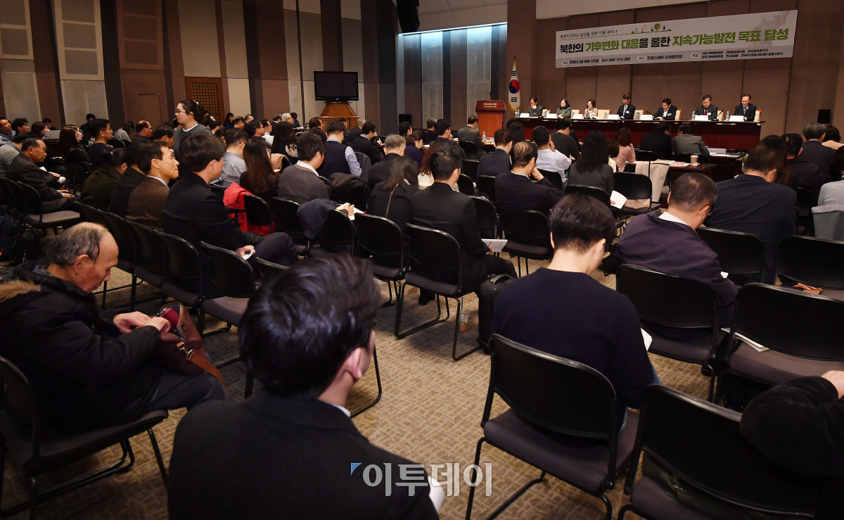 14일 서울 중구 프레스센터에서 열린 북한의 SDGs 달성을 위한 기획 세미나에서 '북한의 기후변화 대응 방안'을 주제로 패널토론이 열리고 있다. 이동근 기자 foto@