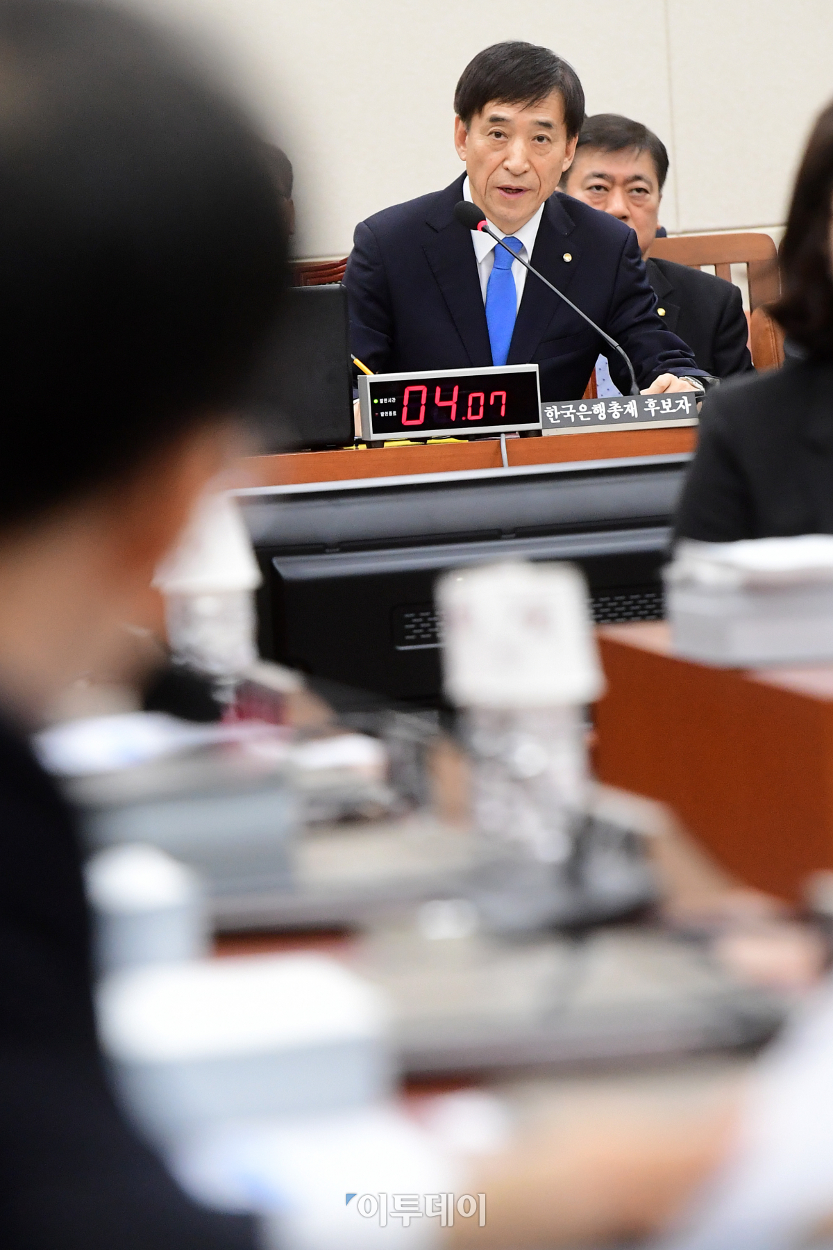 이주열 한국은행 총재 후보자가 21일 서울 여의도 국회 기획재정위원회에서 열린 인사청문회에서 의원들의 질의에 답변하고 있다. 고이란 기자 photoeran@