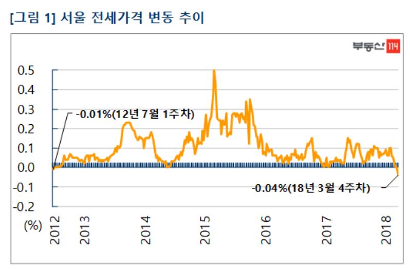 서울 전세가가 2012년 이후 첫 하락을 기록했다.