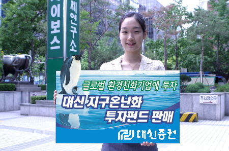올해 7월 새롭게 출시한 대신증권‘지구온난화 펀드’는 갈수록 악화되는 지구 온난화 문제에 적극 대처하고 이에 필요한 첨단기술을 보유하여 향후 고성장이 예상되는 세계적인 기업에 주로 투자하는 주식형 펀드이다.