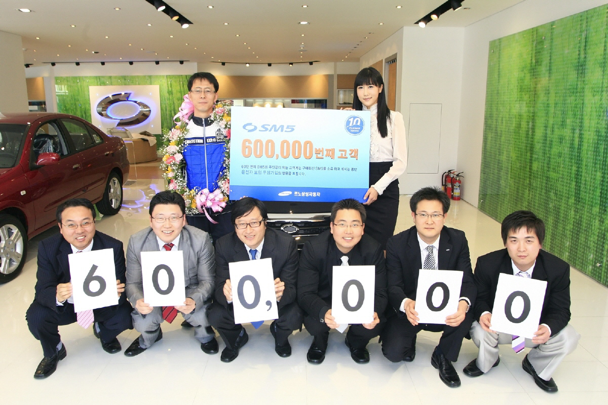 르노삼성자동차는 24일 오전 북대구지점에서 60만 번째 SM5를 구매한 경북 영천에 거주하는 배군현(44, 회사원)씨를 초청해 꽃다발과 함께 최장 10년 무상 운전자보험증서를 증정하는 기념행사를 가졌다.