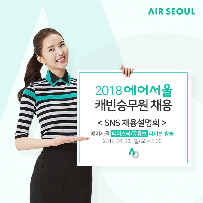 에어서울 관계자는 “에어서울이 신생 항공사로서 젊고 활기 넘치는 항공사를 지향하고 있는 만큼, 채용 부문에 있어서도 항공 업계에서는 최초로 SNS 설명회 방식을 도입하게 됐다”며 “실시간 Q&A 시간도 마련했으니 그동안 에어서울과 캐빈승무원 직무에 궁금한 점이 많았던 분들은 이번 생생한 설명회 현장을 함께하시길 바란다”고 말했다.