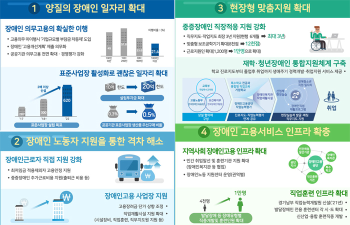 공공부문의 경우 먼저 장애인 고용의무를 법률을 개정해 현재 50인 이상에서 규모에 관계없이 전 공공기관으로 확대한다.