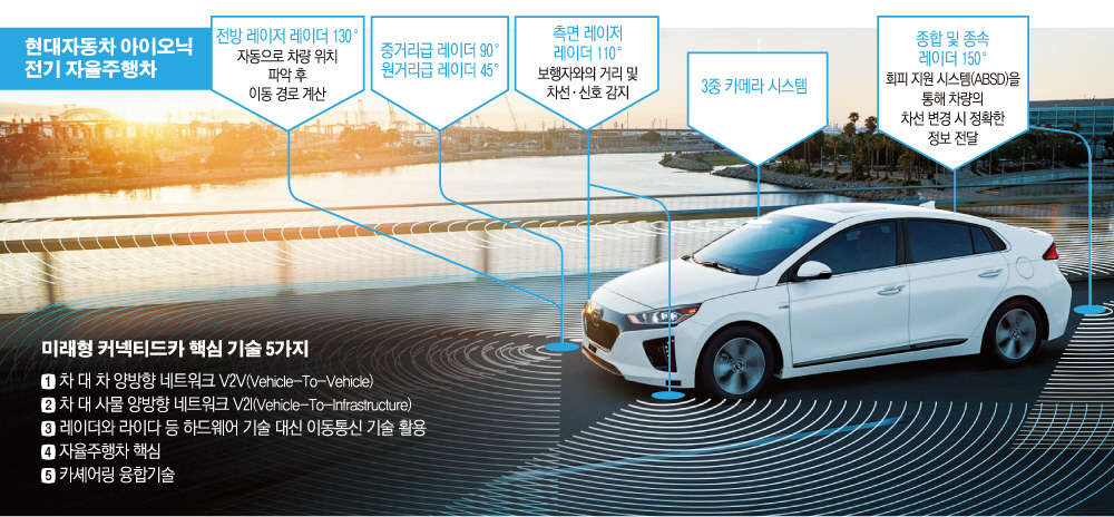 때문에 단순하게 자동차 하나를 개발한다고 될 일이 아니다. 자동차를 중심으로 주변 인프라, 사물 등과 소통이 필요하다. 소통을 하려면 그만큼 소통 대상이 있어야 하고 여러 제반 조건도 필수다. 어설픈 추격자가 따라올 수 없는 기술이기도 하다.